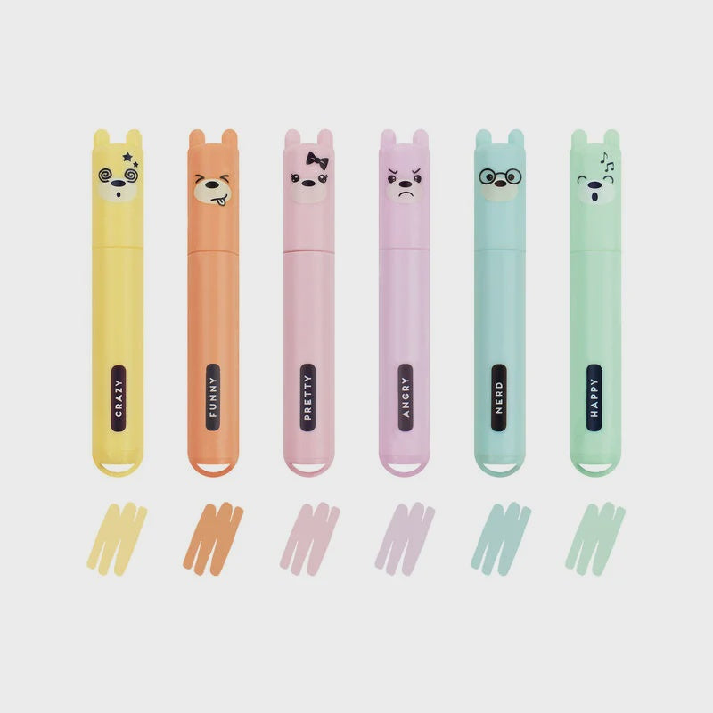 Legami Set of 6 Mini Highlighters - Teddy's Mood - Teddy Bear
