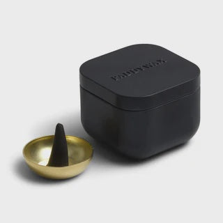 Teak & Tobacco Incense Cone Refill Set with Holder - Black Metal Tin