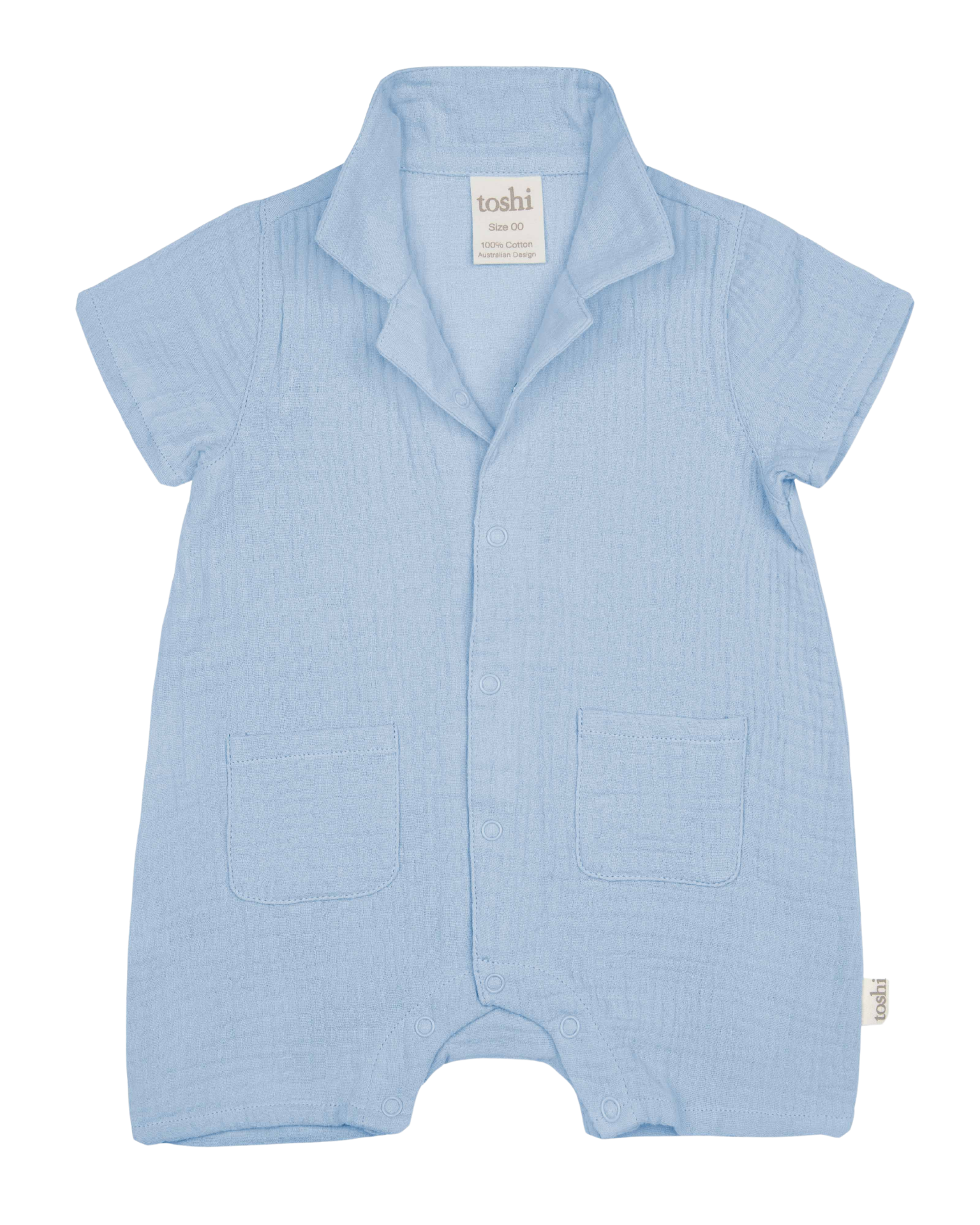 Toshi Romper Sammy is crafted from the finest quality certified 100% organic cotton yarn. The cheesecloth fabrication features a supremely soft and gently nurturing texture. The classic colours create wardrobe staples, and are ideal for layering and transeasonal styling. Convenient press studs offer quick and easy nappy changes. A cute functioning pocket adds a playful and practical touch, perfect for storing tiny treasures and adding charm. The relaxed fit creates maximum comfort and freedom of movement, making the Toshi Romper ideal for playtime and adventures