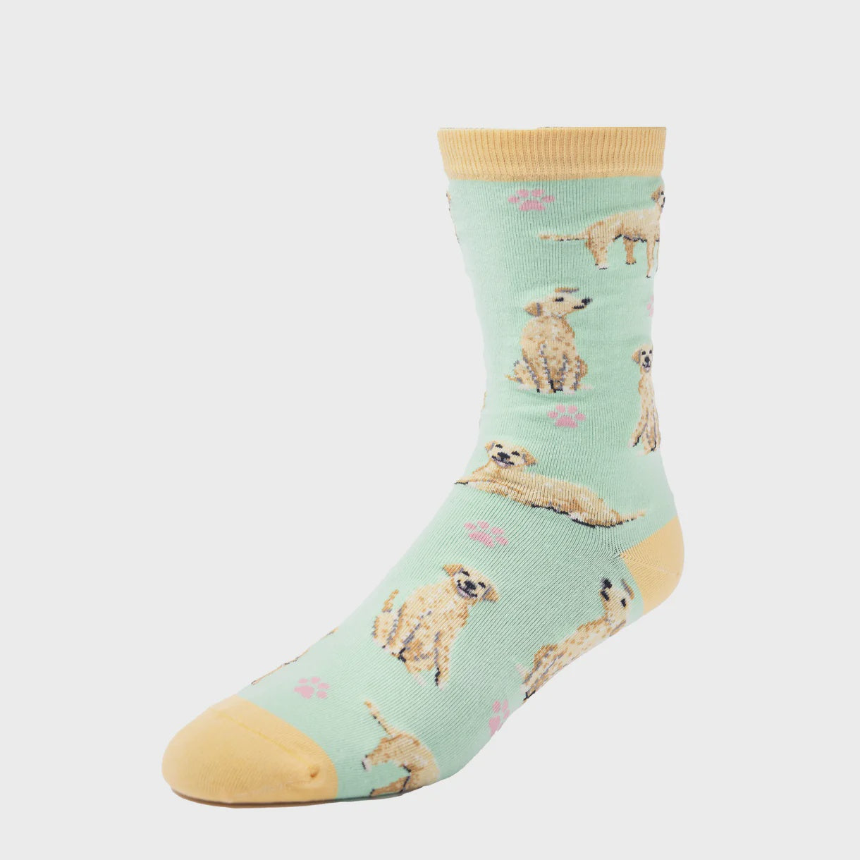 Unleash your love for man's best friend with our Golden Retriever Socks! These adorable socks feature a playful pattern of cartoon-style golden retrievers, capturing the lovable nature of these furry friends. With their friendly expressions, floppy ears, and wagging tails, these pups are sure to bring a smile to your face every time you slip them on.