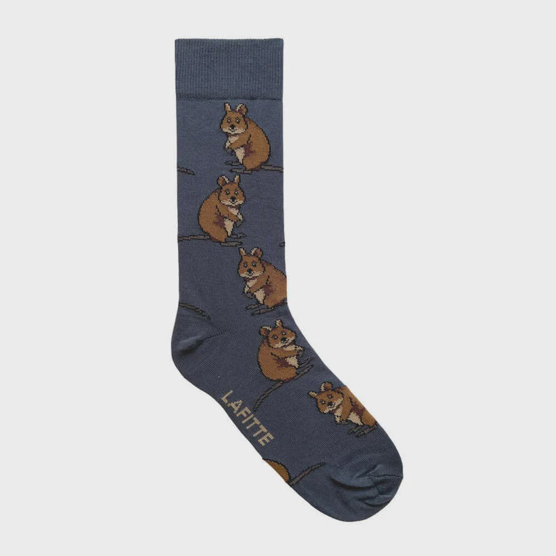 The strange but very cute Quokka is featured on these comfy cotton Quokka Crew Socks.