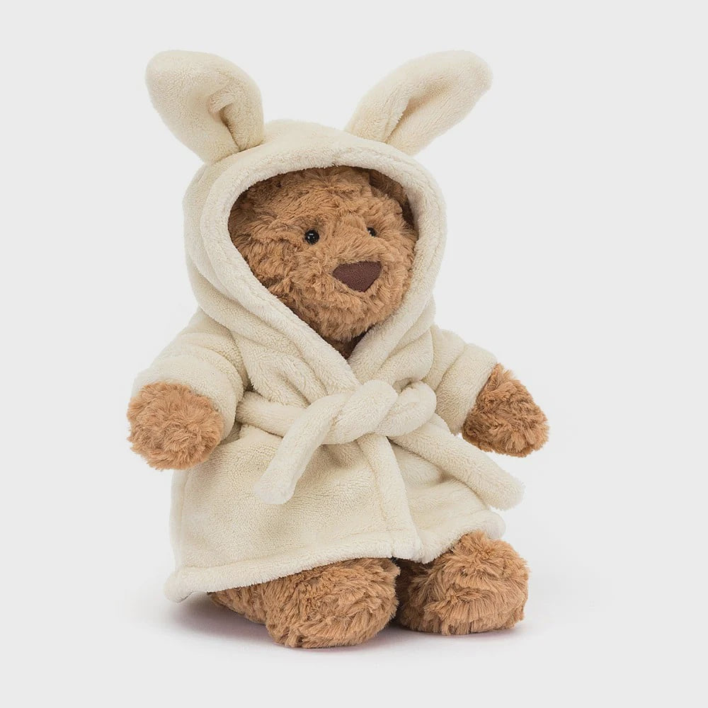 Technically, Bartholomew Bear is “getting ready for bed”. But in reality, with a robe this plush, he’s been in pre-sleep mode since 3pm. He takes lounging seriously: hot honey infusions (he swears by them), half-finished bedtime stories, and a commitment to the soft and gentle life. When he’s not powering down though, he’s a performer at heart. As well as this luxurious loungewear, Bartholomew loves to dress up. From pumpkins to personalised jumpers, there’s a look for every occasion. Which one takes your fancy?