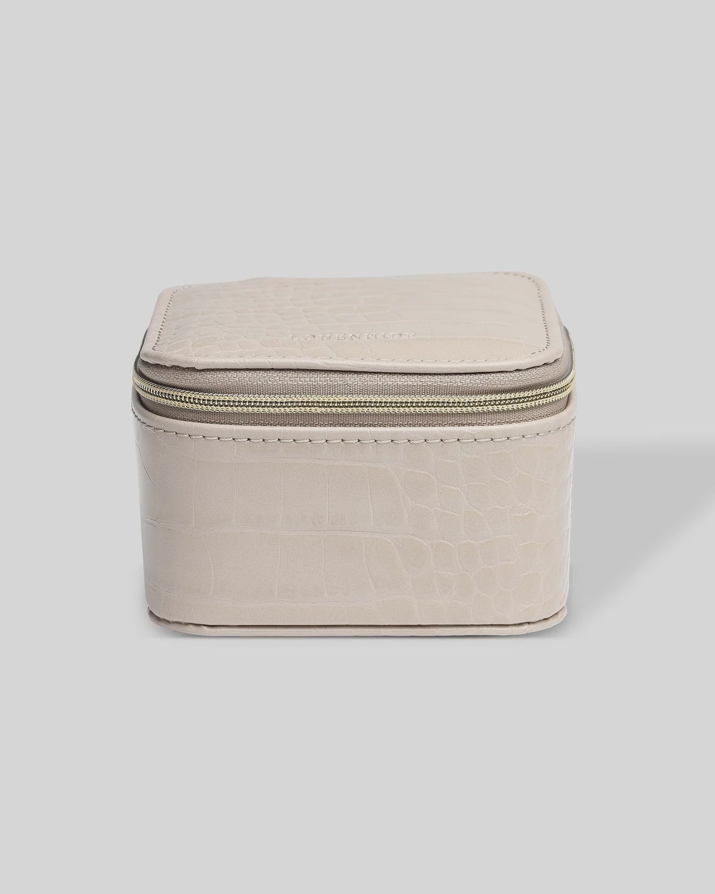 The Louenhide Beau Croc Putty Jewellery Box is a small, square jewellery organiser designed to keep your bespoke pieces safe and secure at home or when you are on the go. Featuring a faux croc exterior in a luxe winter colourway, the Beau Croc Putty is every woman's dream jewellery case! Store your larger pieces in the main compartment, while safely stowing your smaller jewels in the elasticated slip pocket. Designed thoughtfully with a soft suedette lining, store your jewellery safely and securely in the Beau Croc Putty Jewellery Box.