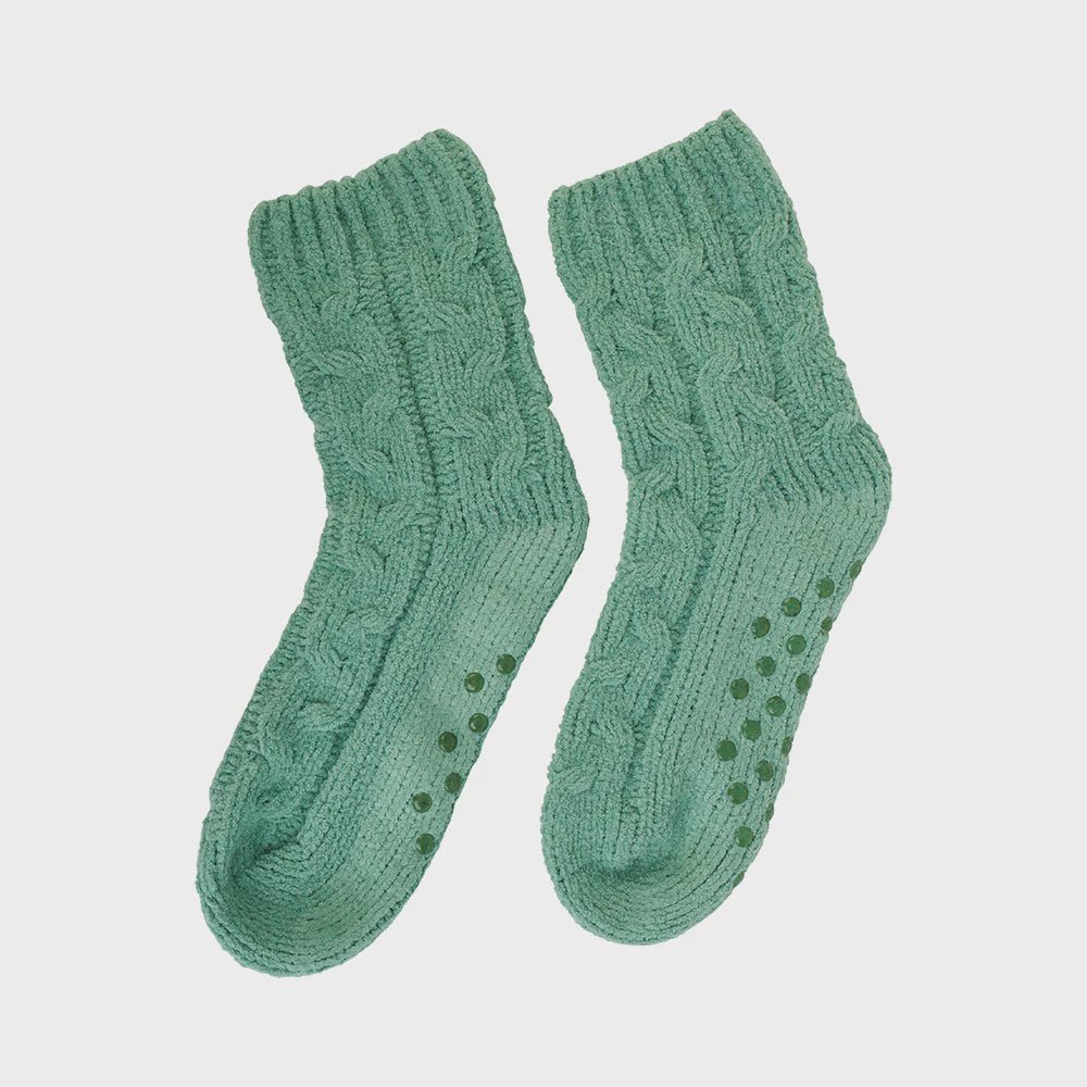 A fresh new take on your favourite Chenille Room Socks this season features a traditional cable knit design, that is so soft and textured it feels like a warm hug! Grippers on the sole ensure there is no slip n’ sliding around on tiled or polished floors.