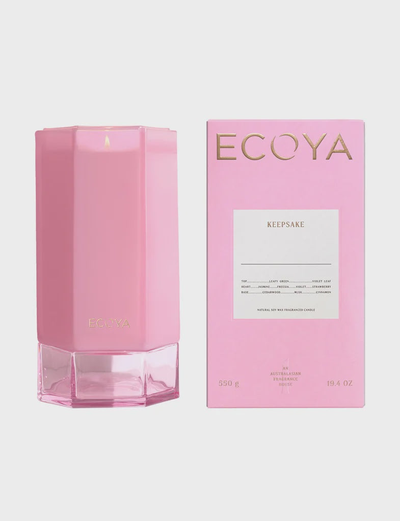 A fragrance to hold onto. Encased in a sculptural six-sided coloured cut glass jar, the Keepsake Candle is designed to be as timeless as the memories it evokes.