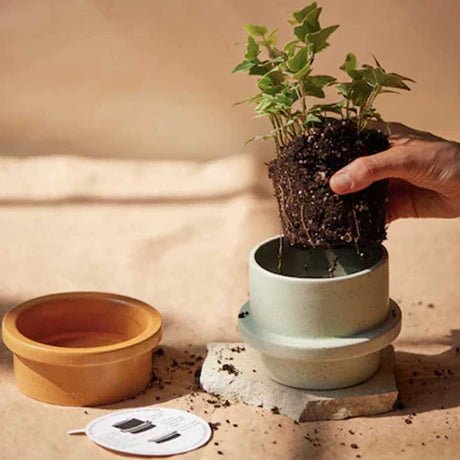 Calling all candle lovers with green thumbs! The Folia Candle - Fresh Fig & Cardamom showcases a sweet scent and a ceramic vessel made to be combined into stackable, self-watering planters once the wax runs out. Mix-n-match within the Folia Collection to create a colorful planter and scent combination as unique as you are. Flip the dustcover to discover how to repurpose your candle in a few simple steps!