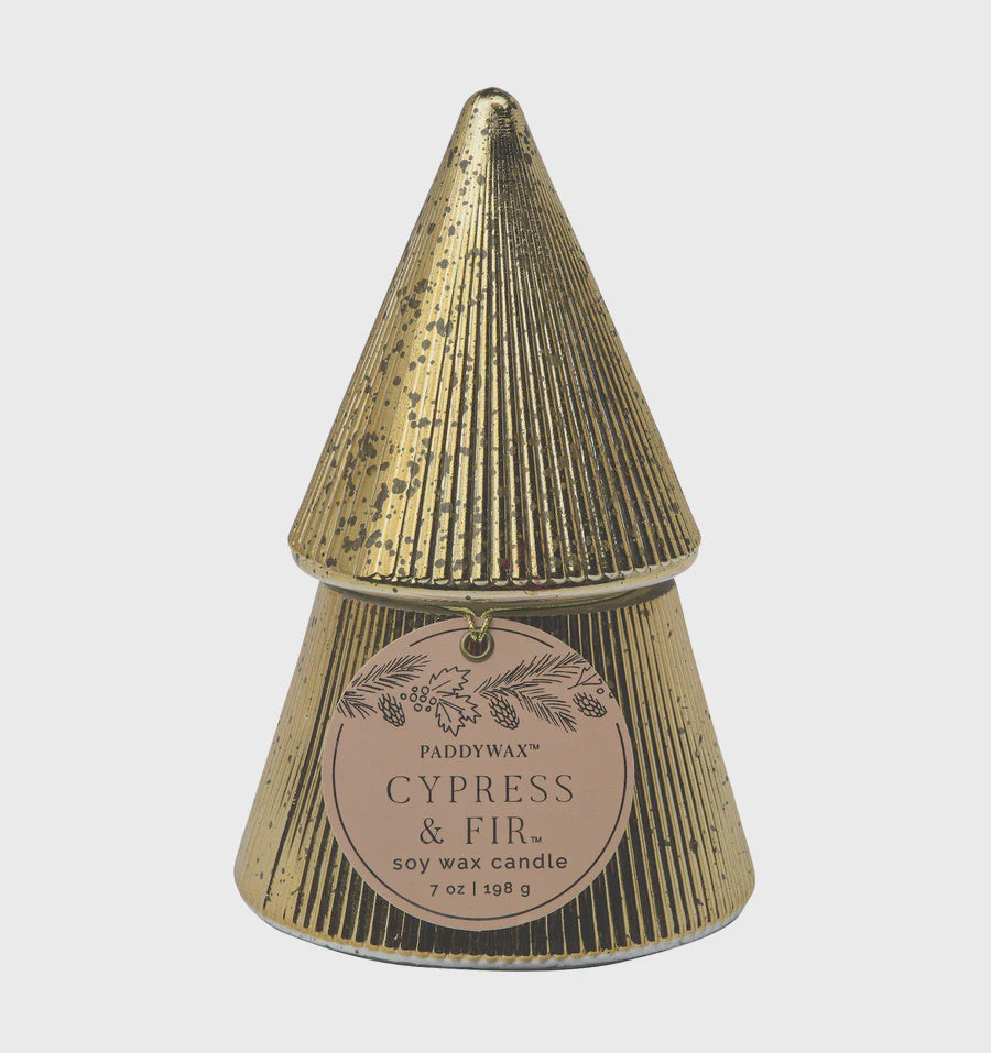 Elevate your holiday décor with the luxurious Paddywax Gold Stacked Tree Candle – Cypress & Fir. Featuring a shimmering gold stacked tree design, this elegant soy wax candle fills your home with the fresh, woodsy fragrance of cypress and fir — a perfect blend of crisp evergreen and subtle pine.