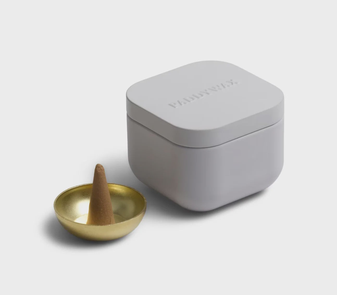 Infuse your space with the soft, comforting aroma of Cotton & Teak using our Cream Cubed Metal Tin Incense Refills. This set contains 20 fragrant incense cones and a sleek incense cone holder, all housed in a stylish cream-colored cubed metal tin—ideal for storage, gifting, or travel.
