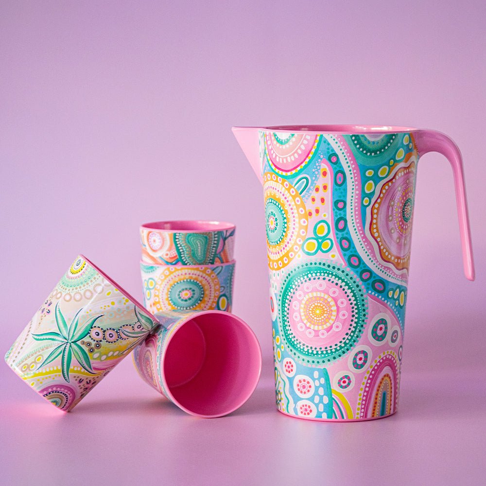 Melamine jug, packaged in an illustrated gift box. 23.5cm high x 12.5cm diameter. Dishwasher safe - Do not microwave.