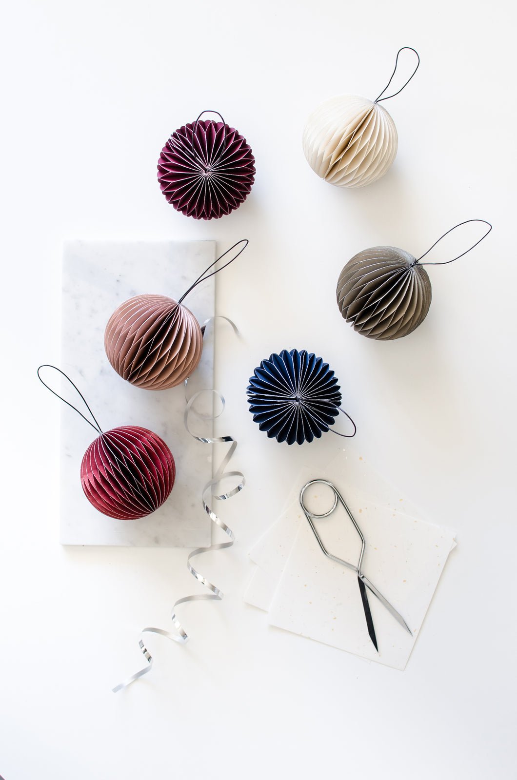The enclosed magnet enables you to fold and store the ornaments away neatly to use over and over. Each ornament is hand made from FSC certified paper and comes with a quality leather string.