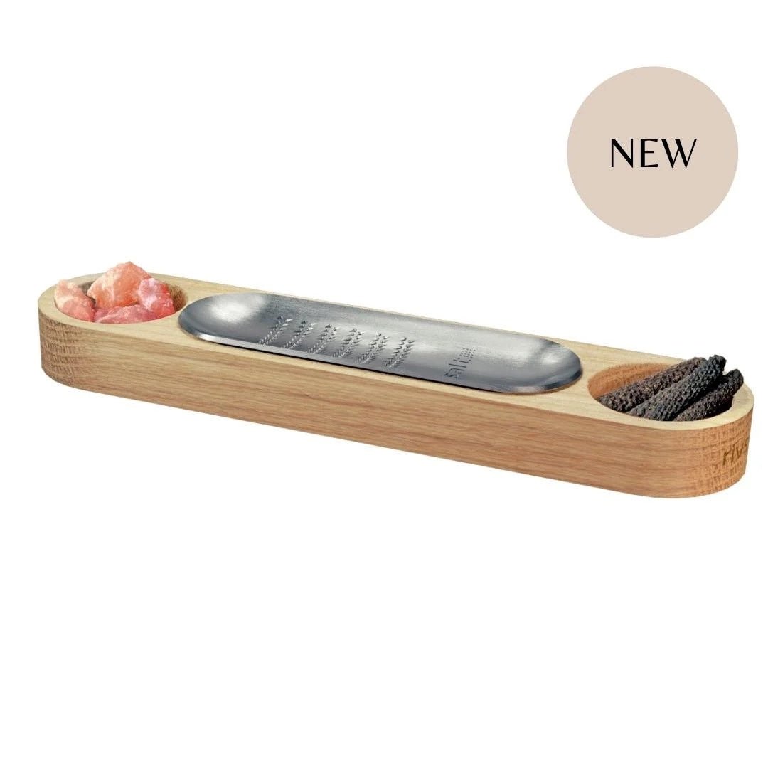 The RIVSALT approach to these versatile spices involves several well-crafted elements delivered in a clean white cardboard gift pack. Himalayan salt rocks, Java long peppers, carefully carved oak wood holder and perfectly shaped Japanese-style stainless steel grater.
