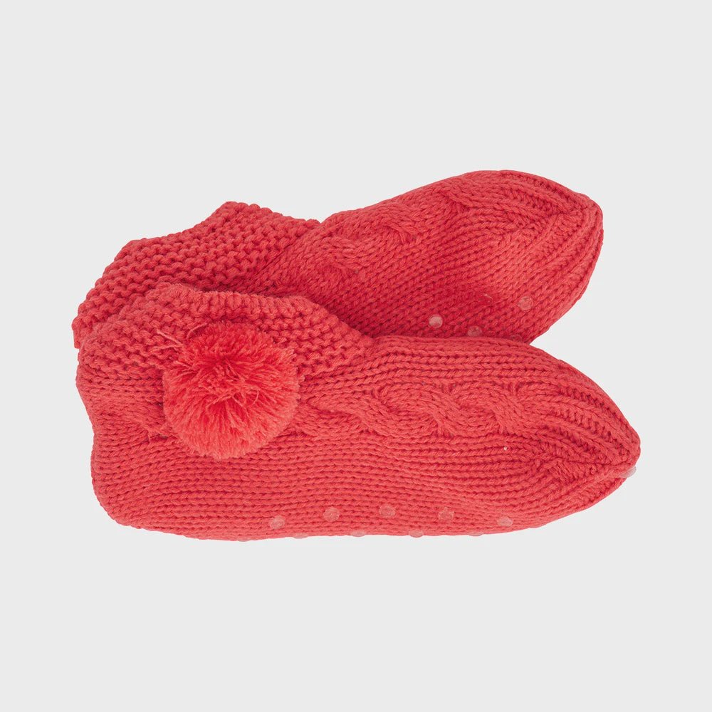 You’ll be dancing around the house in our NEW Slouchy Slipper colours. Back by popular demand, these slippers feature a stylish knitted design and fun side pom poms, you’ll never want to take them off! Pair them with our Cosy Luxe robes and eye masks, for the ultimate night’s sleep. Sherpa lined for extra warmth and grippers on the sole. One size fits most.