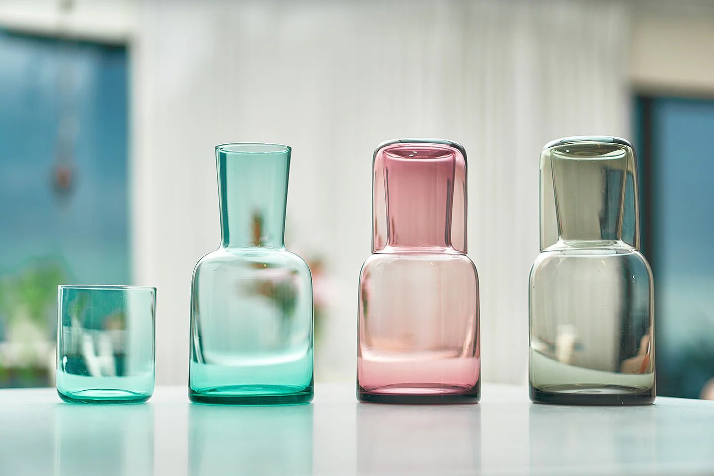 Brighten up your table setting and stay hydrated in style with our beautiful carafe & glass set. Inspired by water sets in France, each set matches perfectly with our tumblers so you can expand your collection staying with the same colour scheme. Mix & match for a colourful look, available in 4 colours, tumblers available separately.